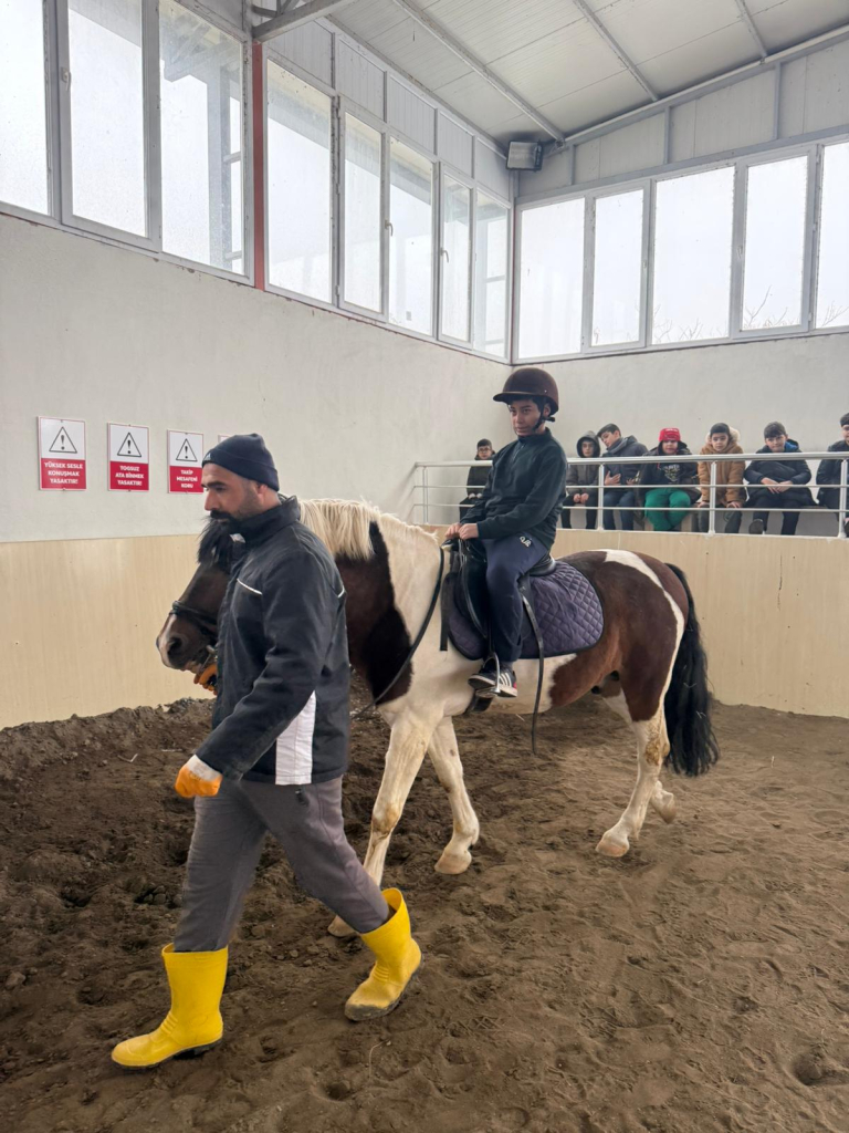 Teorik bilgilendirmenin ardından profesyonel eğiticiler eşliğinde binicilik faaliyetine geçildi. Kasklarını takarak eyer üzerine çıkan 18 öğrenci, güvenli bir ortamda at binmenin keyfini sürdü. Özellikle küçük yaştaki öğrencilerin atlarla kurduğu bağ ve yaşadıkları heyecan renkli görüntülere sahne oldu
